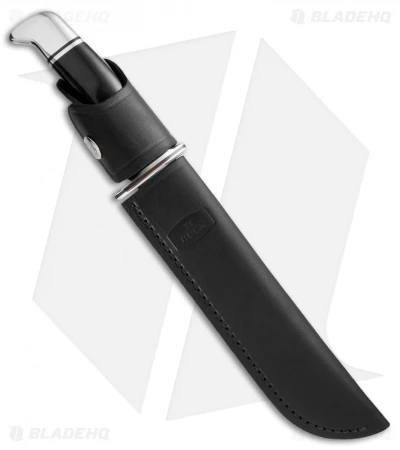 The 120 General fixed blade is a big, heavy duty knife. The Buck General knife has a deep clip point blade with hollow grinds and a satin finish. This 120 General has a black phenolic handle with an aluminum pommel and guard. Includes a leather sheath.