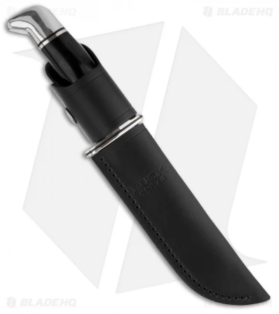 The 119 Special is a classic large hunting knife that has been popular for some 47 years, ever since Hoyt and Al Buck used to build them by hand in their two-man shop. Today, this hunting knife has a black phenolic handle with polished guard and polished pommel. The large clip blade is satin finished with hollow ground bevels and a plain edge. The 119 Special comes with a sturdy leather sheath.